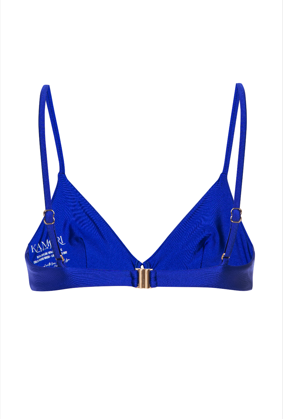 The Amelia Bralette Top in Indy embodies style to capture all of your best assets. Indy’s richly hued blue evokes calming deep sea waters. A small peekaboo ring in the center front draws the eye in as the ample bralette keeps you fashionably shaped. Gold hardware secures the back in a jewelry-like clasp, and gold adjustment rings on the back of the straps let you create your perfect fit.
