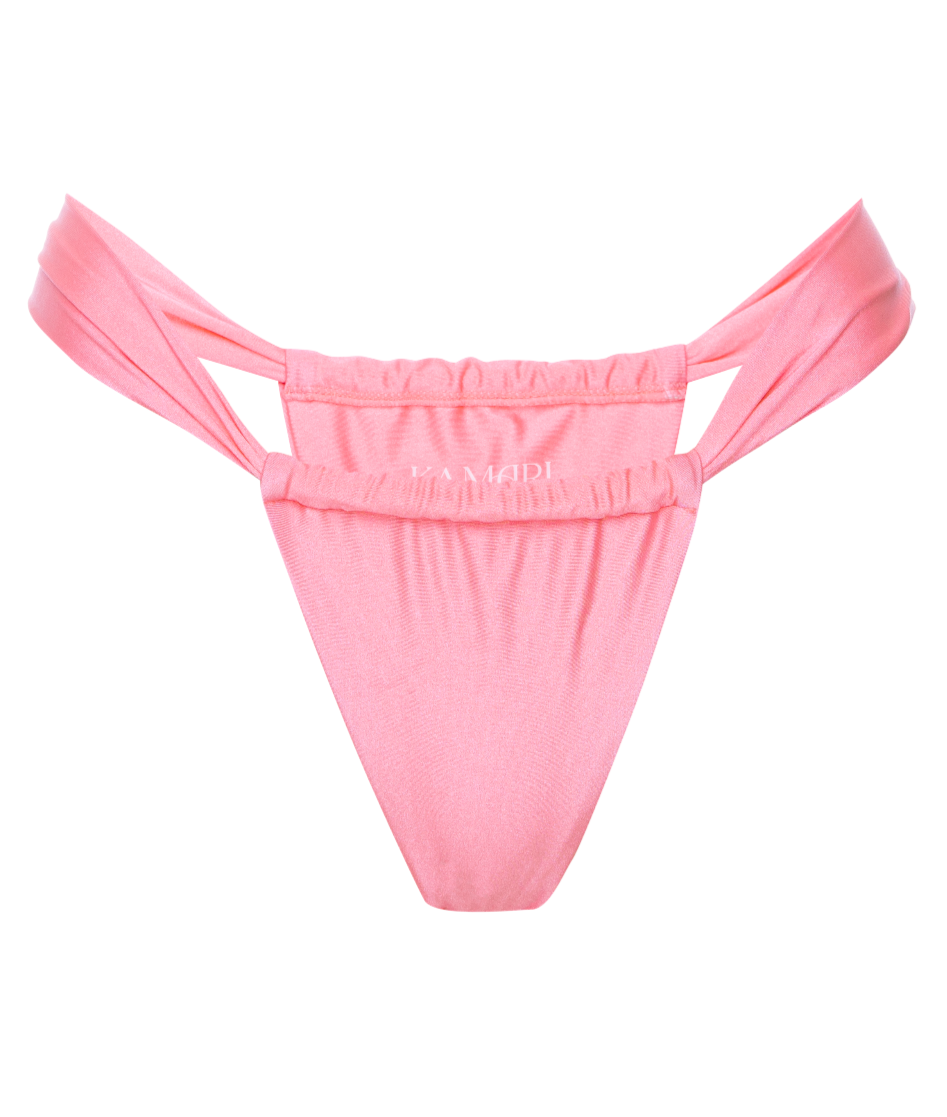 Thong style bottoms offer a cheeky or barely-there fit, making it ideal for those who prefer a more daring and sun-kissed look. The front is usually similar to other bikini bottoms, but the defining feature is the thin, string-like back that provides a smooth, flattering silhouette with minimal tan lines.