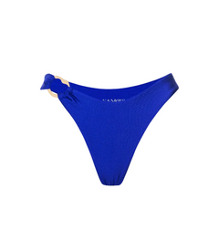 The Luna Triangle Top in Indy gives you complete freedom of how much you dare to bare. Indy’s richly hued blue evokes calming deep sea waters. Matching double halter ties support your best features while you adjust the triangle placement along the matching string tie that ends in back with more Kamari gold bling.