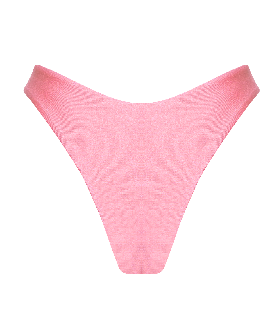The Nala Cheeky Bottoms in Bubblegum announce your entrance with style.The brightly hued pink is a youthful spirited color that calls for fun. Based on our original cheeky bottoms, an artistic oval gold ring was added low on the front hip, evoking both a sexy and sophisticated look.