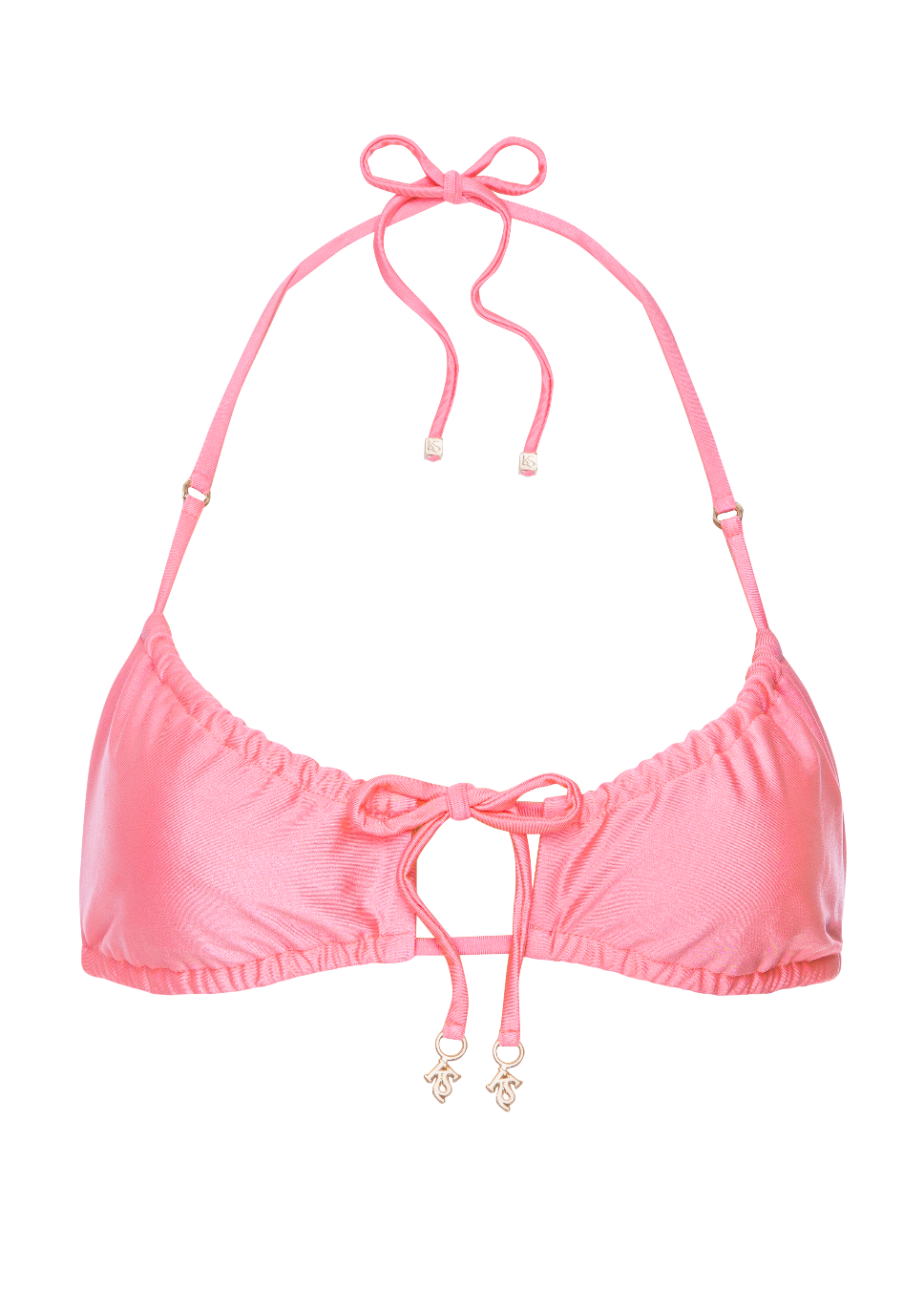 The Stella Scoop Top in Bubblegum puts you in total control of coverage with not one, but three matching adjustable ties.The brightly hued pink is a youthful spirited color that calls for fun. With Kamari’s signature gold hardware at the end of all adjustable ties, you’ll be showing bling as you decide how much to ruche the top and bottom of the cups, and how you want to adjust the back and neck ties.